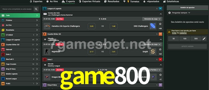 O game800 oferece uma grande seleção de opções de apostas em e-sports com probabilidades competitivas
